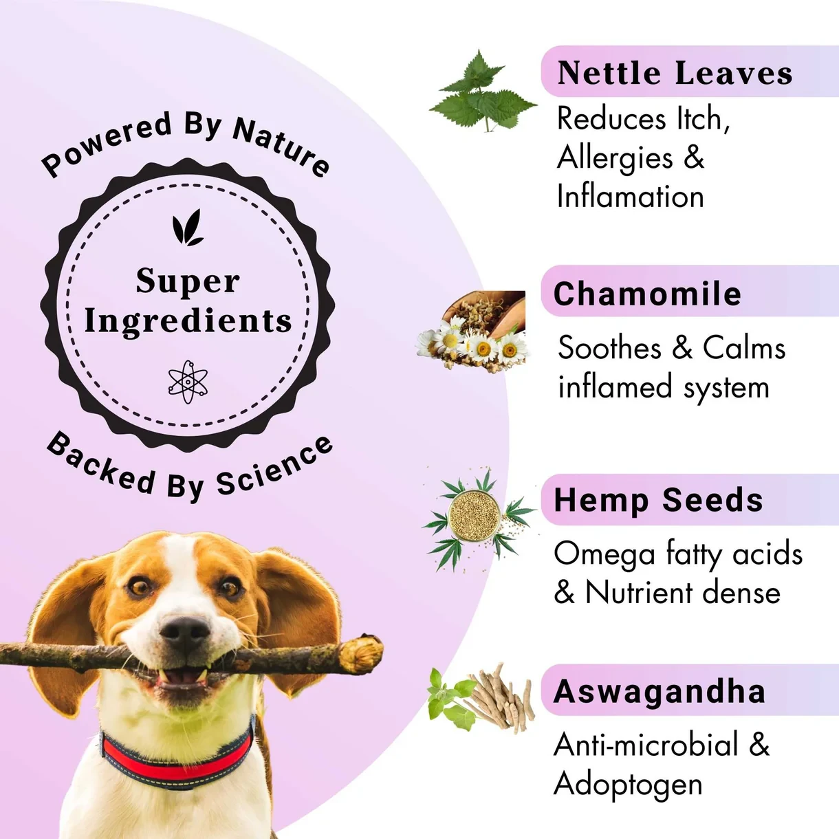 A super safe & super effective jar – that repairs & restores balance, naturally! Say goodbye to your incessant itching with our natural Itch & Allergy Relief. Packed with superfoods, it soothes, heals, and boosts immunity—for healthier skin, coat & comfort.
