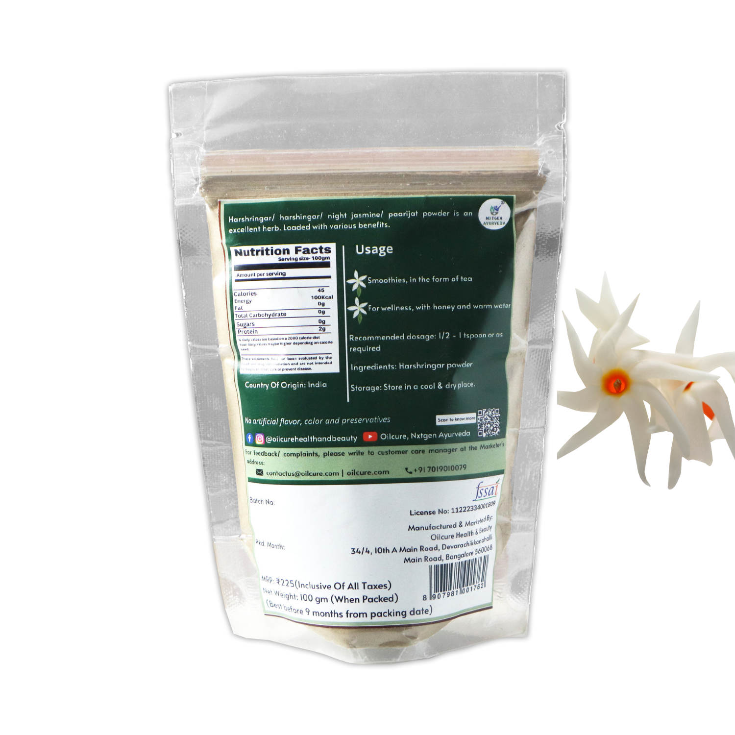 Nxtgen Ayurveda Harshringar/Harsingar/Harshingar/Night jasmine/ Paarijat or parijat leaves powder is very beneficial. Harshringar Leaves Powder's nutrients and antioxidants contribute to bolstering the immune system, supporting overall health.