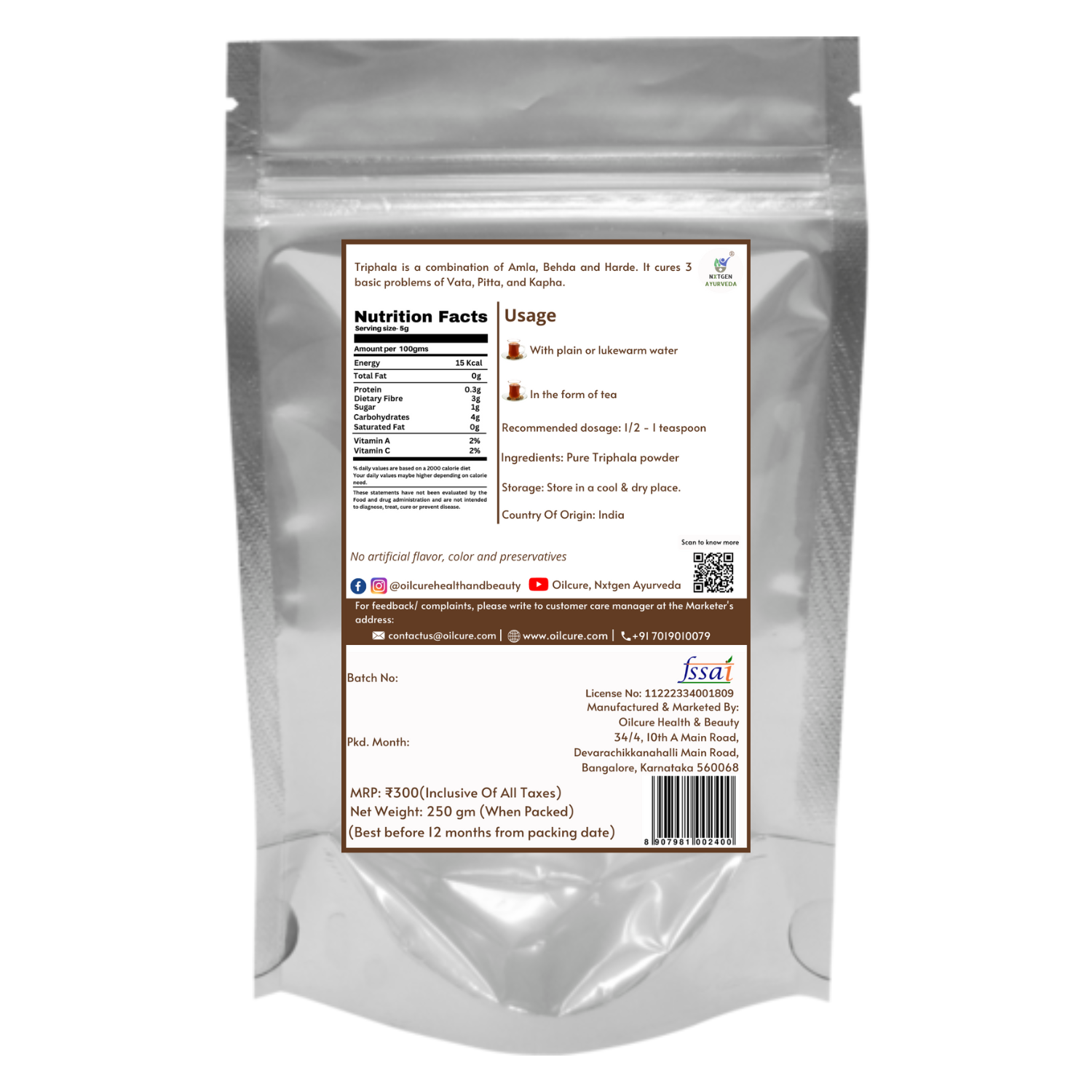 Triphala is a combination of Amla, Behda, and Harde. It is also called Dosh Nashak. NxtGen Ayurveda Triphala Superior is a perfect blend of Indian gooseberry or Amla, Haritaki or Harde, and Bibhitaki or Behda. It has various benefits which include improving digestion, constipation, weight loss and so much more! These ingredients can do wonders.