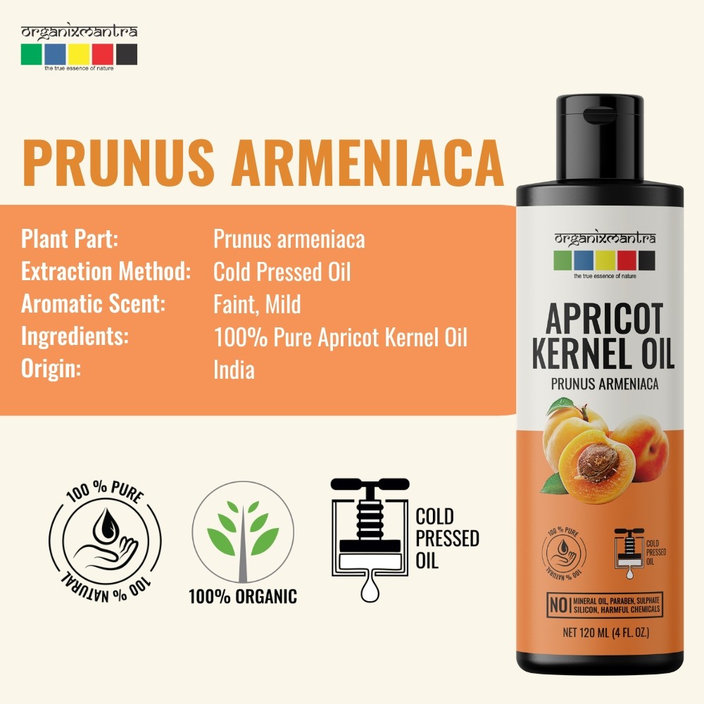 Organix Mantra Apricot Kernel Oil, 100% Pure, Natural & Cold Pressed Organic Oil, 120ML