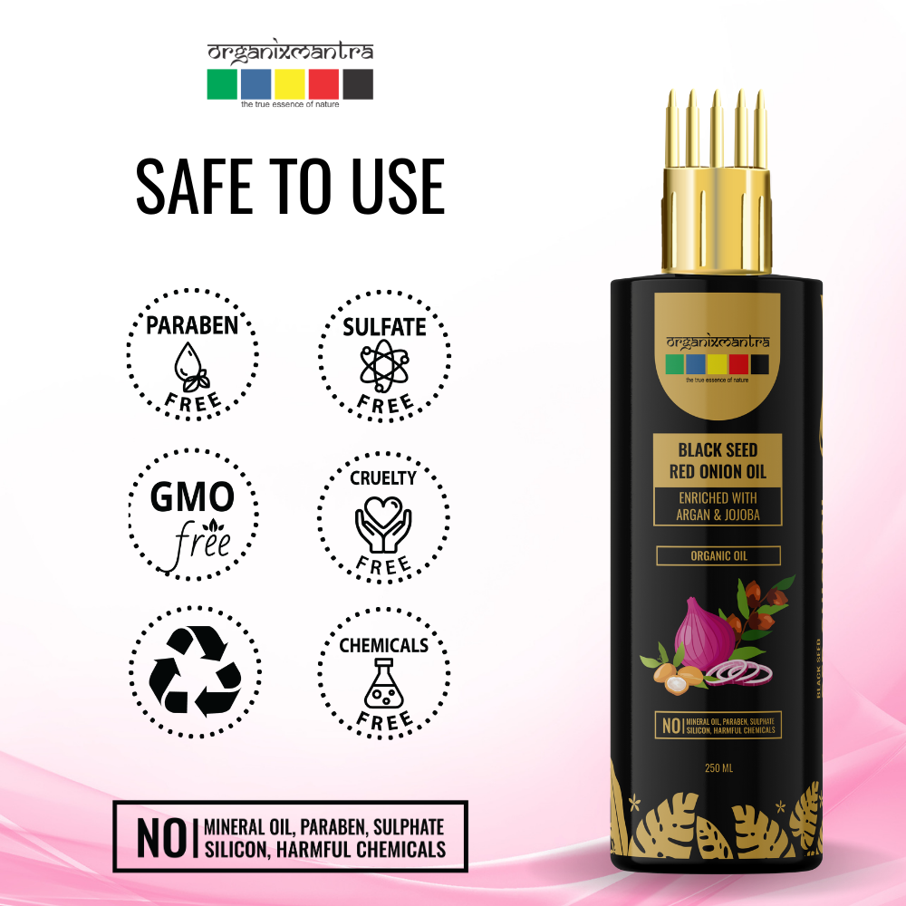 Experience the transformative power of Organix Mantra Black Seed Red Onion Oil, a blend of natural ingredients designed to nourish, strengthen, and protect your hair. Black seed Red Onion Hair Oil may help promote hair growth, fortify hair strands, reduce hair fall, and improve overall hair health, leaving your locks feeling soft, strong, and lustrous.