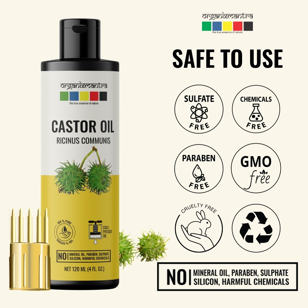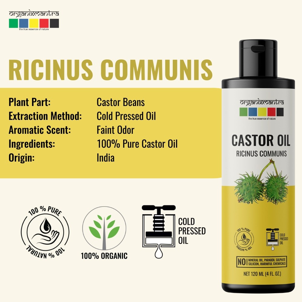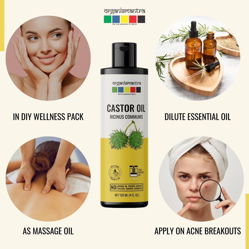 Organix Mantra 100% Pure, Cold-pressed and Therapeutic Grade Castor Oil is odorless and colorless and can be used directly on the skin or hair after mixing another Carrier Oil such as Coconut or Sweet Almond Oil. This Carrier Oil has a wide array of cosmetic benefits for hair, body, and skin. Since it is non-comedogenic and naturally humectant it can be used on all skin types- dry, oily, acne-prone, sensitive, and combination as it deeply hydrates the skin without clogging. The anti-inflammatory properties of Castor Oil make it a go-to oil for soothing inflamed skin due to acne breakouts. Applying the Oil on sunburns hastens the healing process. Massaging your body or face with this oil enhances the softness and smoothness of the skin.