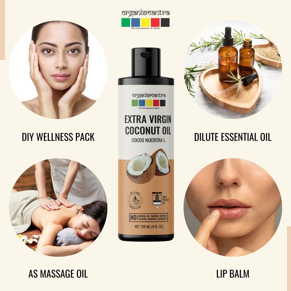 - DILUTE ESSENTIAL OIL – Coconut Oil may be used as a Carrier Oil to dilute Essential Oils for aroma-therapeutic massages and other therapeutic blends.