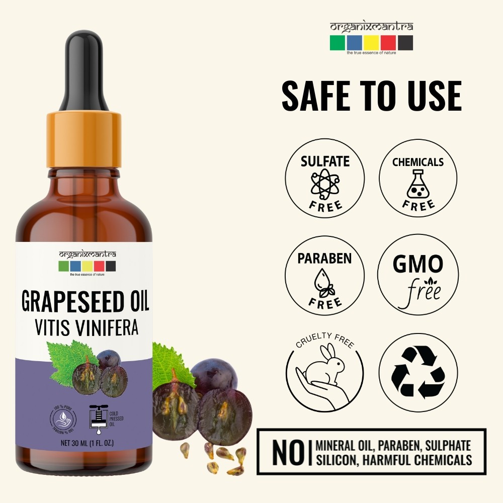 - LIGHTWEIGHT MOISTURIZER: Grapeseed Oil is known for its fast absorption, making it an ideal moisturizer for all skin types, including oily and sensitive skin.