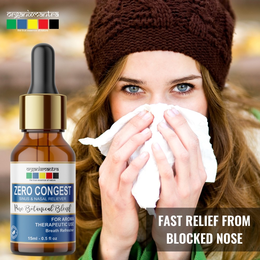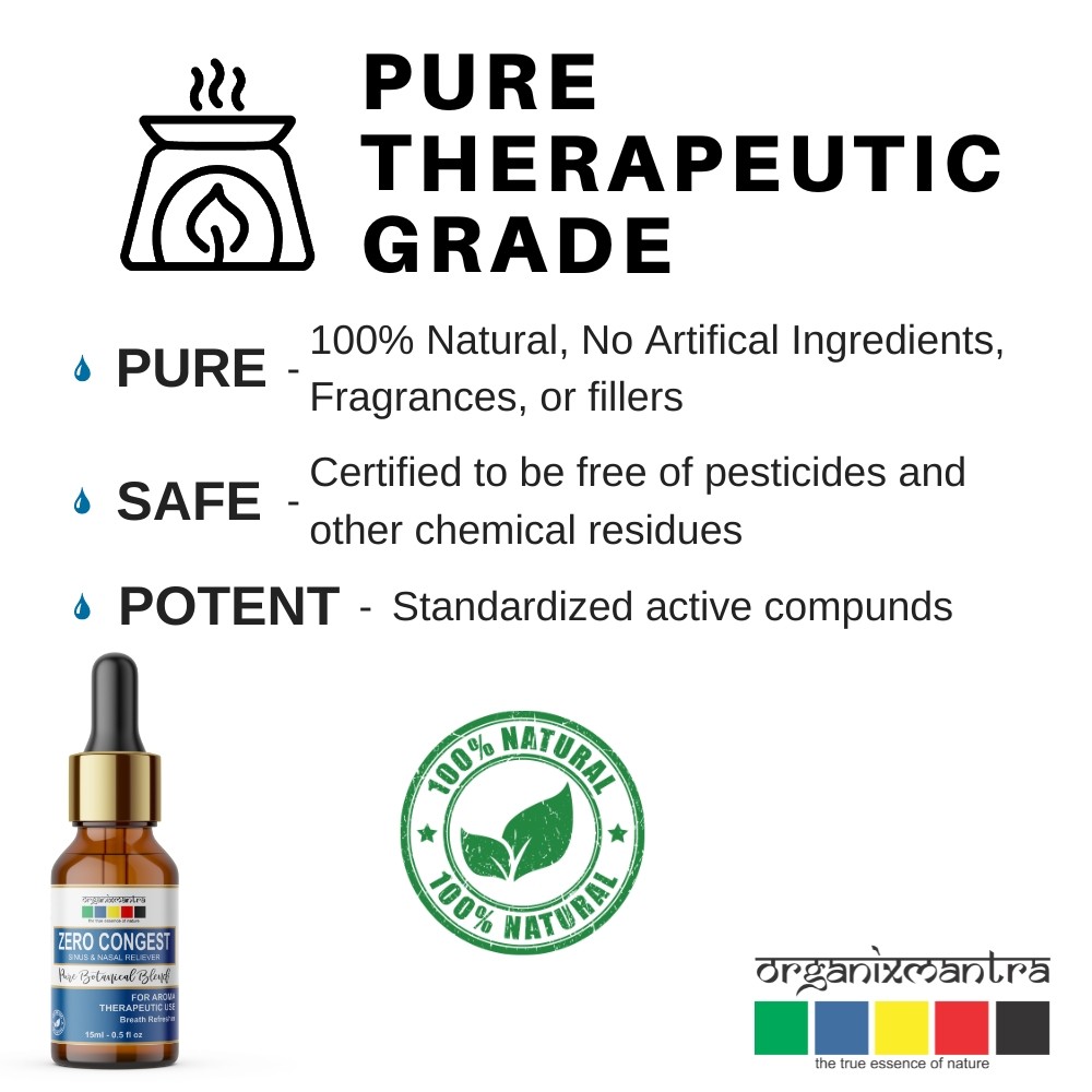 Prevents Cold and Cough: Zero Congest is a blend of essential oils that are known for their antibacterial, anti-fungal, antimicrobial, antiviral, anti-Inflammatory properties. Diffusing or topically applying this blend at the onset of monsoon and winter seasons keeps cold and cough at bay.