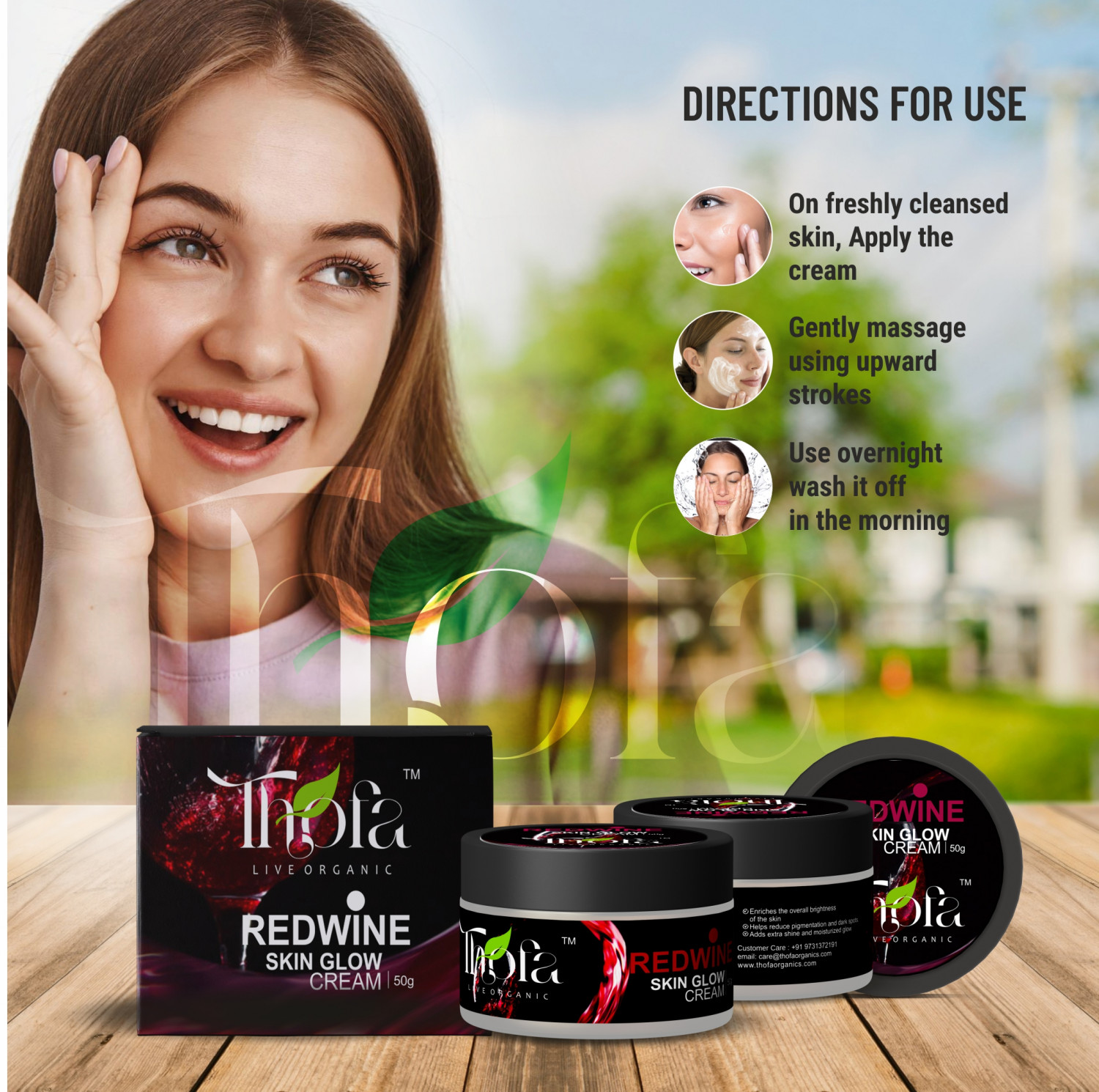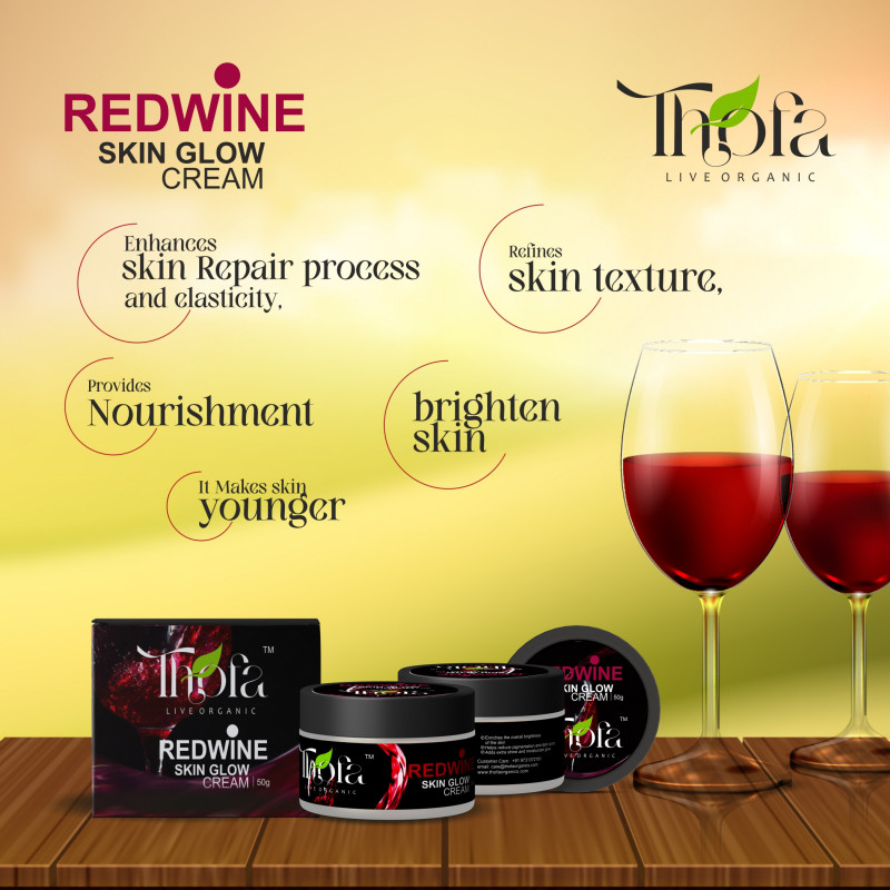Thofa Red Wine Skin Glow Day & Night Cream – 50 GM With Rosehip oil, Nicotinamide, and Avocado oil. Almond oil. Pomegranate Jojoba oil
