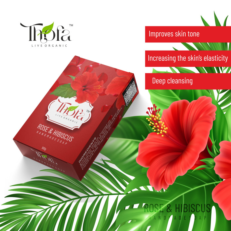 Thofa Live Organic Handmade soap with Rose and Hibiscus Exfoliating Natural Soap for Men and Women For Natural Glowing Skin – 100gm